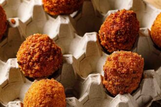 Mettere il riso in una ciotola capiente, passarlo sotto l’acqua corrente fredda e lavarlo fino a quando l’acqua non diventi limpida. Scolare il riso, versalo in una casseruola e ricoprirlo completamente con acqua. Unire un pizzico di sale e un filo di olio di semi. Coprire, portare a bollore e far cuocere per 10-12 minuti. Spegnere il fuoco e lasciar riposare per 10 minuti. Bagnare le mani con acqua acidulata con 1 cucchiaio di aceto di riso, raccogliere un pugno di riso, porre al centro un pezzetto di salmone o tonno e chiuderlo a formare una pallina. Completare la preparazione avvolgendo la palla di riso con una striscia di alga nori o passandola nei semi di sesamo neri o bianchi. Ripetere l’operazione fino a completare gli ingredienti. Servire le palle di riso con salsa di soia e wasabi.