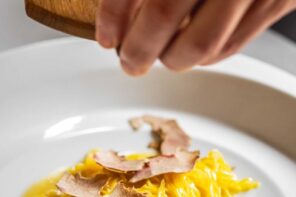 Non potevamo poi che continuare con Langa – tajarin al ragù bianco di vitello dalla sfoglia corposa, cotti perfettamente e in cui la delicatezza del ragù rendeva il piatto davvero godibile e molto piacevole al palato e con Nippo-plin – raviolini dal plin ripieni di ricotta di pecora saltati con soya zucchine e katsuobushi, un piatto decisamente ben eseguito a cominciare dai raviolini con sfoglia dalla bella consistenza e dal ripieno ricco e lievemente acido ben bilanciato dalla sapidità dell’intingolo a base di soya, zucchine e katsuobushi che andava a completarlo.