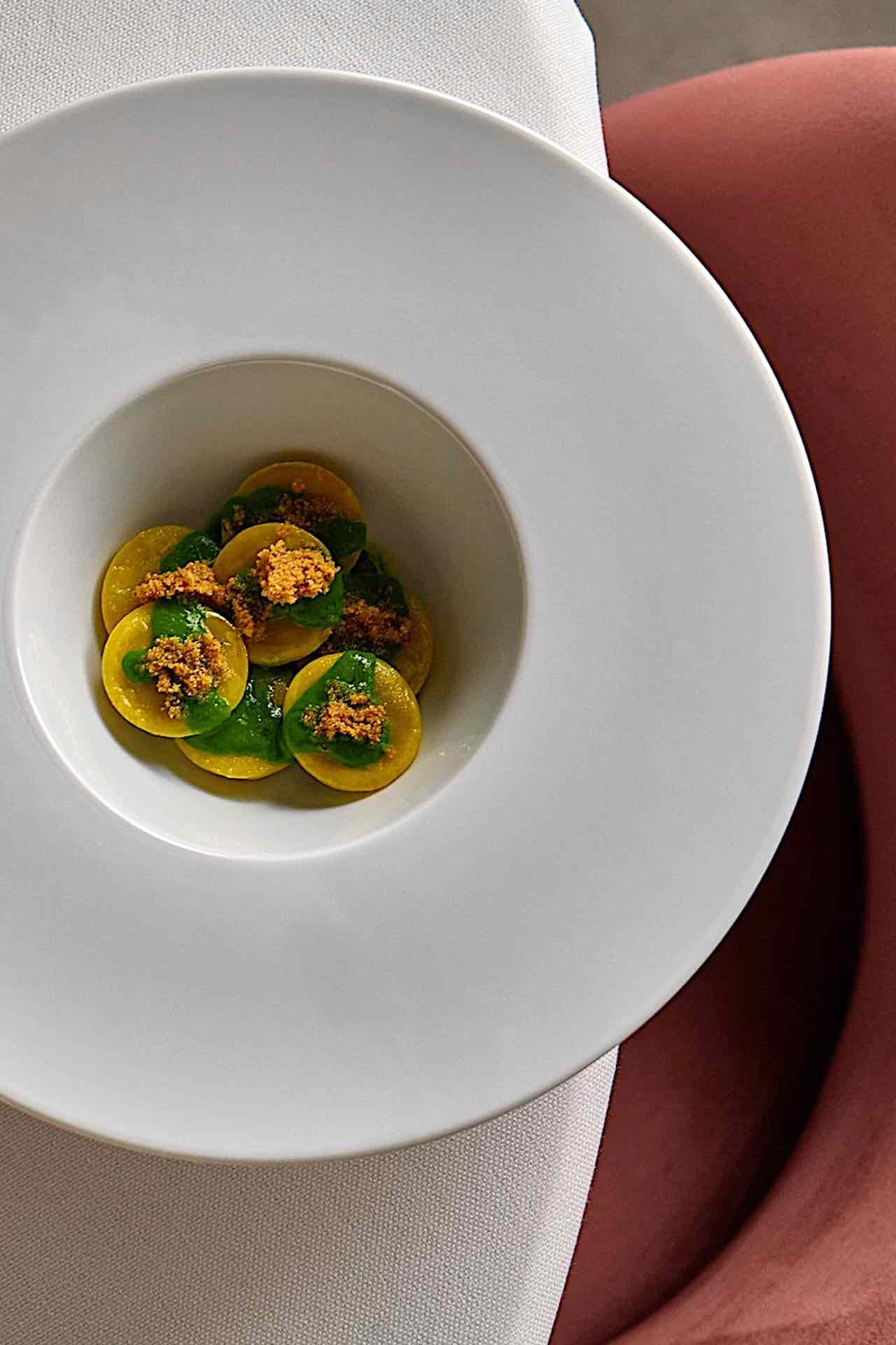 Tra le proposte assolutamente da provare i bottoni di pasta fresca 48 tuorli: Mascarpone, fondo vegetale, crema di scalogno e olio al basilico, Brasato, cime di rapa e limone, Mascarpone, vitello e basilico, Sarde, burro al limone, acciughe del Cantabrico e muddica… solo per citare alcune gustose espressioni.