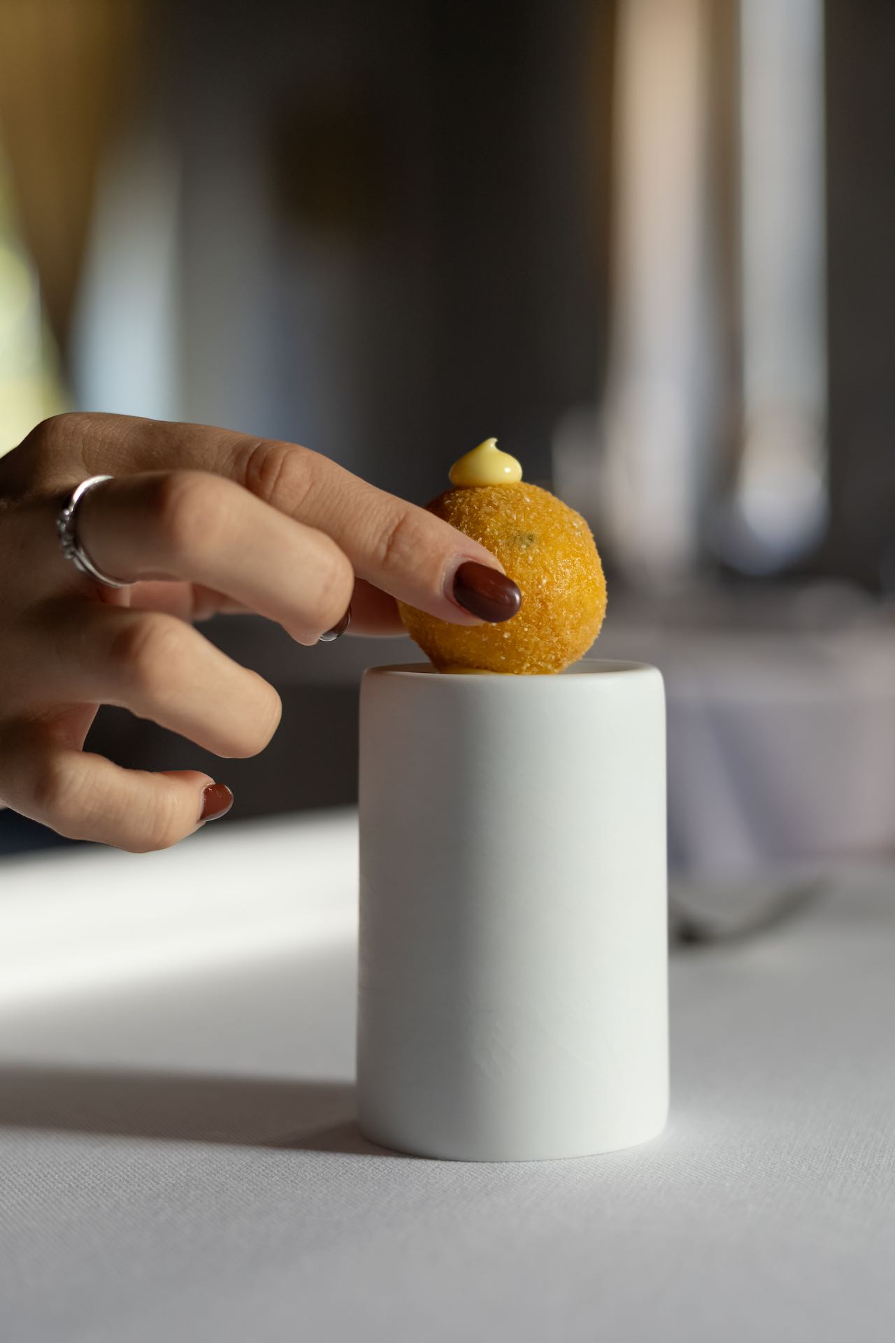 Varcando la soglia di De Gustibus e sedendovi alla tavola di Davide Cristaldi e Giulia Mandara sarete accolti da un primissimo assaggio/coccola che è una chiara espressione della cucina del ristorante: una piccola golosa pasticceria salata pensata per stuzzicare la curiosità e preparare il palato al viaggio gastronomico che si sta per intraprendere con delizie come Ricottina di mandorle dolci e gel di limone, Arancino burro e spinaci, Fassone marinato & tuorlo d’uovo Le Camille.