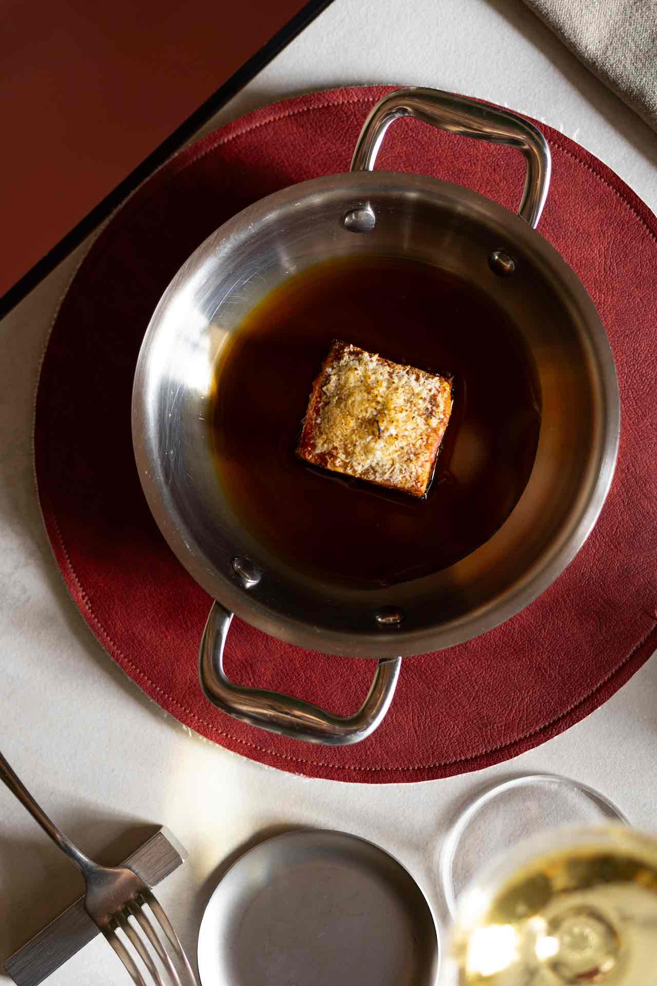 Durante la nostra ultima visita da GAF abbiamo iniziato con il Pepper Mun, una terrina di peperone quadrato d’Asti, polvere di capperi e pangrattato rosolata al burro e gratinata con parmigiano reggiano servita con un’indimenticabile melassa di peperone arrosto.