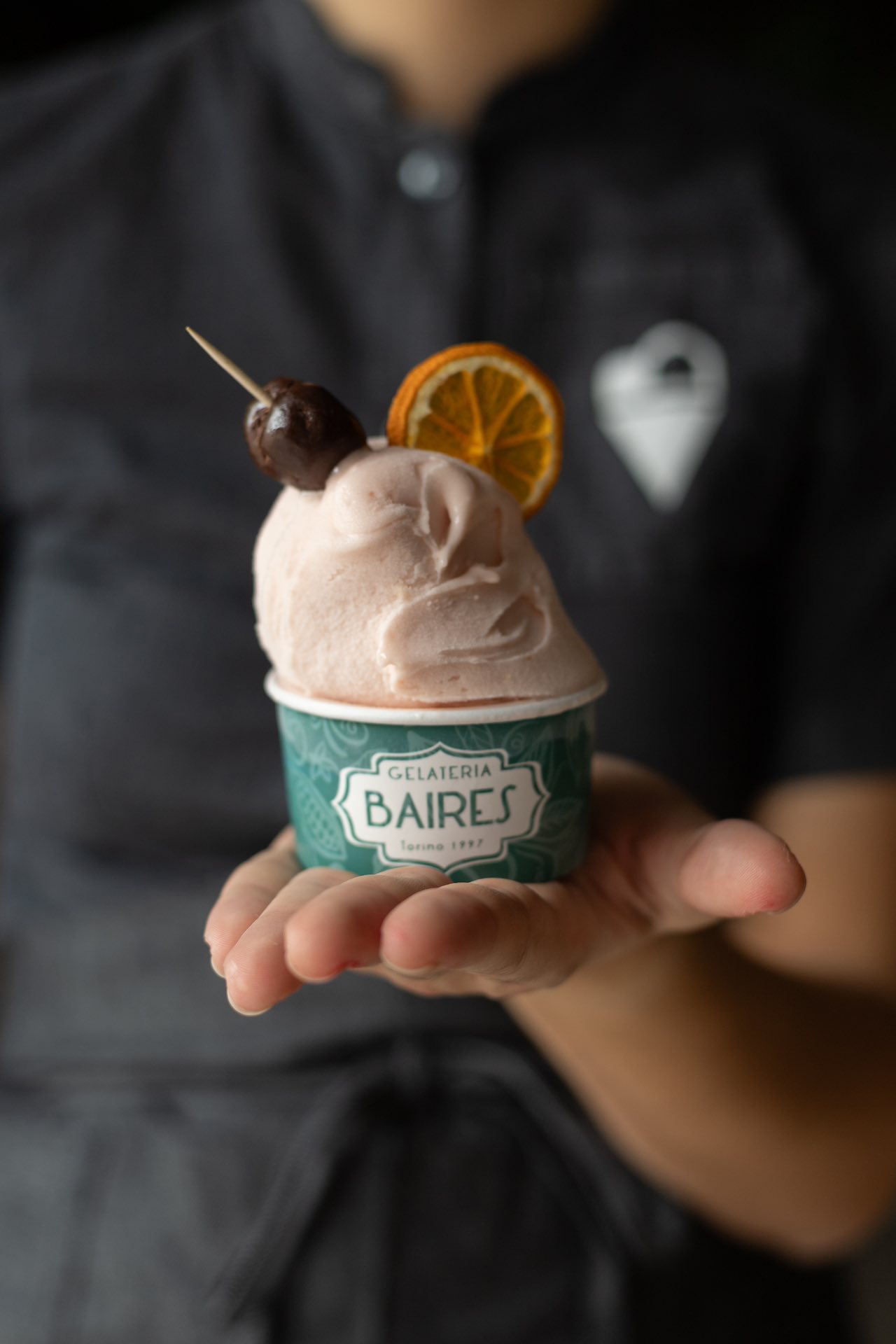 Rye whiskey, vermuth e angostura: il Manhattan – il cocktail preferito da Eddie Lo Svelto / Paul Newman ne Il colore dei soldi di Martin Scorsese – per la VII edizione di Salone OFF Food Topic diventa un sorbetto alcolico firmato Gelateria Baires. Un sorbetto piacevolmente alcolico completato da una profumata fettina di arancia essiccata e una ciliegia candita ricoperta con cioccolato fondente. Gelateria Baires. Via Buenos Aires, 78i – Torino. Tel. +39 3533141358.