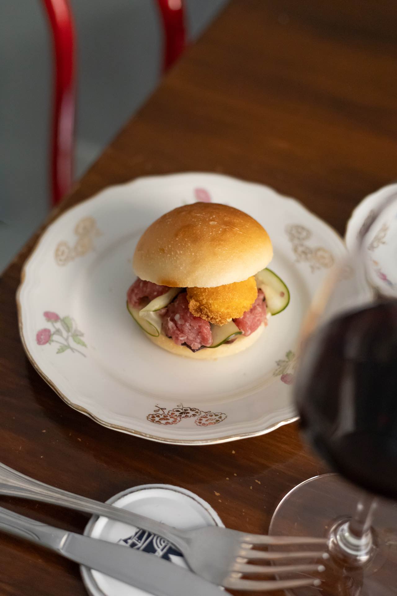 Combina suggestioni nostrane a elementi d’oltre oceano – terra di origine di Paul Newman – il bun con salsiccia di Bra, tuorlo d’uovo fritto, zucchine marinate e cipolle caramellate proposto da D’Amble Bostronomia Irriverente per la VII edizione di Salone OFF Food Topic. D’Amblè Bistonomia Irriverente. Via Claudio Luigi Bertholett, 23a – Torino. Tel. +39 0110606019.