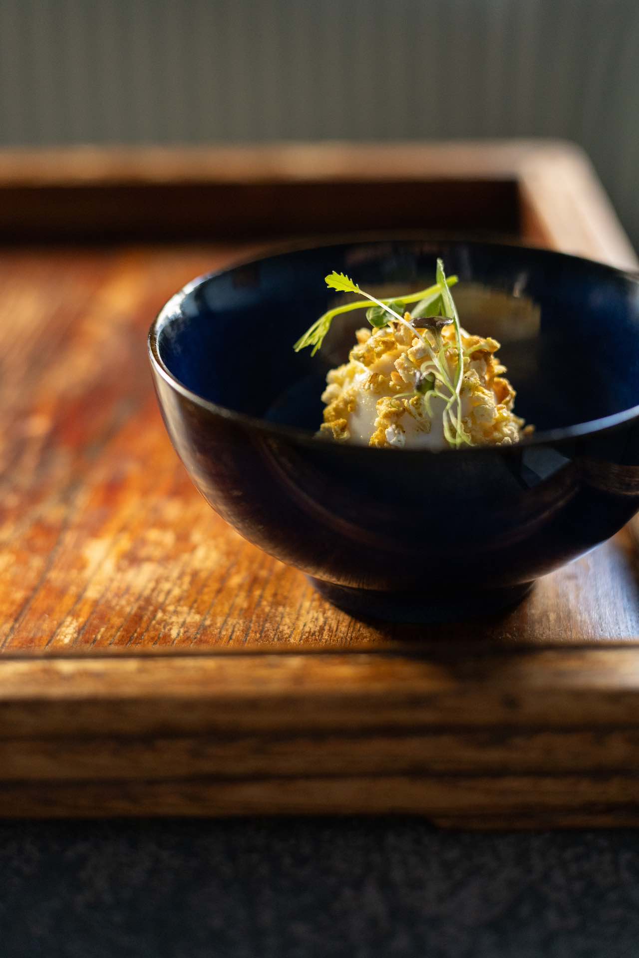 Per il piatto di Salone OFF Food Topic lo chef Daniele Santanera di Sciarada trae ispirazione dall’iconica scena delle uova divorate da Paul Newman nel film Nick Mano Fredda. Un uovo marinato in kefir e erbette impanato nel popcorn affumicato e speziato. Sciarada. Via Claudio Luigi Berthollet, 20d – Torino. Tel. +39 3409599722.