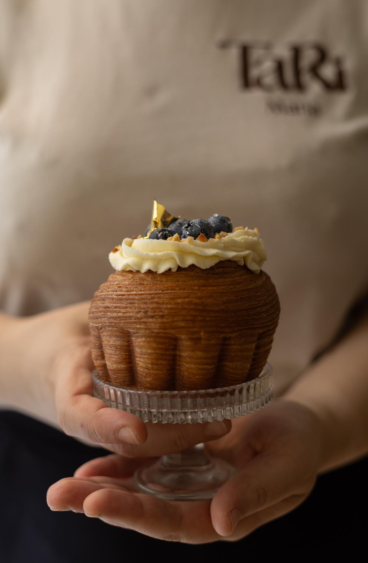 Vuole ricordare il bicchiere da whisky – spesso tra le mani di Paul Newman nei film interpretati – il croissant ideato da Giacinto Rignanese e Maria Tamburrano di Tarì – Cake Lab Viennoiserie. Un fragrante sfogliato – in versione bianco e nero per richiamare le pellicole di un tempo – che racchiude un morbido pan di Spagna bagnato nel Baileys – crema al whisky – e una deliziosa crema alla nocciola. A completare il goloso croissant una crema di mascarpone alla vaniglia e mirtilli dall’intenso blu come i meravigliosi occhi di Paul Newman. Tarì – Cake Lab Viennoiserie. Via Giuseppe Mazzini, 29a – Torino. Tel. +39 3338942531.