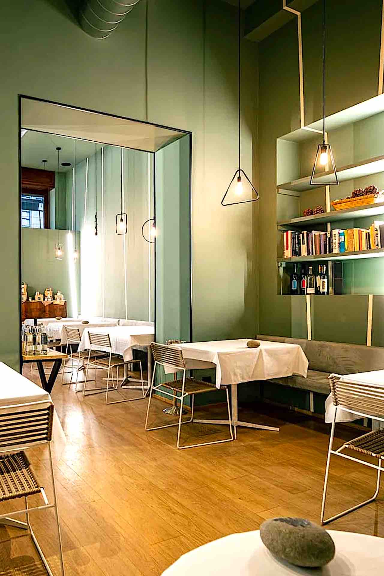 Locale raccolto, intimo. Pochi tavoli in sala. Cucina a vista. Lo chef Antonio Chiodi Latini si muove con naturalezza tra fornelli e tavoli come un attento padrone di casa. Osserva. Ascolta. Dialoga.