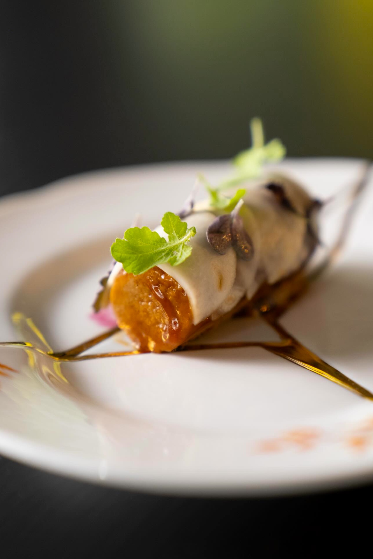 Cannavacciolo Bistrot. Via Umberto Cosmo, 6 – Torino. Tel. +39 0118399893. Menu 160 €: Benvenuto dello chef, Calamaro, piselli e menta, Asparagi, uovo e bergamotto, Plin, fave, provolone del monaco e limone nero, Agnello alla Wellington, la sua salsa e carciofo alla brace, Millefoglie ricotta e arancia.