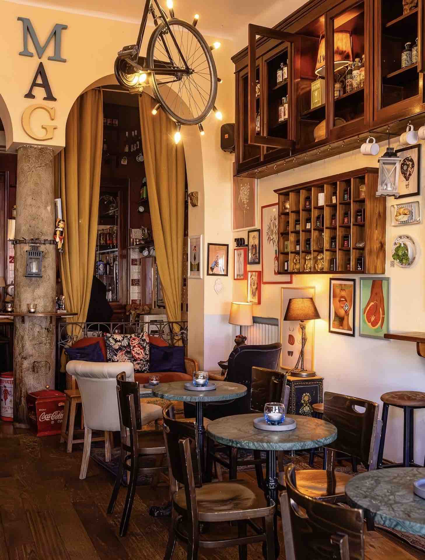 MAG. Via di Ripa Ticinese, 43 – Milano. Tel. +39 0239562875. Locale sui Navigli in stile bohémien dove prendersi il proprio tempo dal mattino fino a tarda notte. Qui drink dalle combinazioni inusuali accompagnano pietanze come Falafel di ceci con salsa allo yogurt speziato, cetriolini pickled ed erba cipollina, Tartare di fassona con salsa olandese al wasabi e cipolla rossa in agrodolce, Carpaccio di manzo, arancia, grano stagionato e balsamico, Piadina marchigiana con pollo cotto a bassa temperatura, squacquerone, bacon croccante, pomodoro, rucola e salsa all’uovo, Take-Sando – baguette con polpo piastrato, coleslaw e salsa tonkatsu.